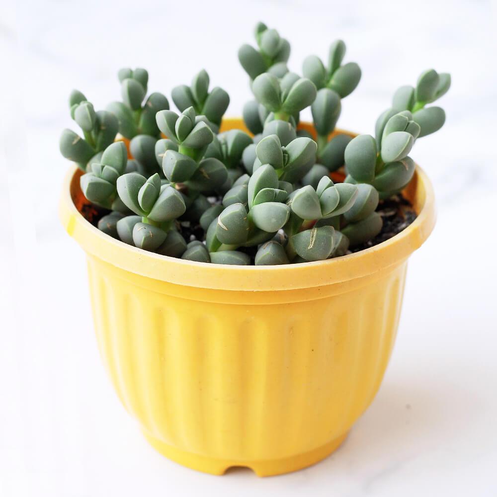 20厘米。具有对生的厚叶,呈三棱形,灰绿色,最长达4厘米。黄色雏菊状花朵,直径可达4厘米,下午开放。