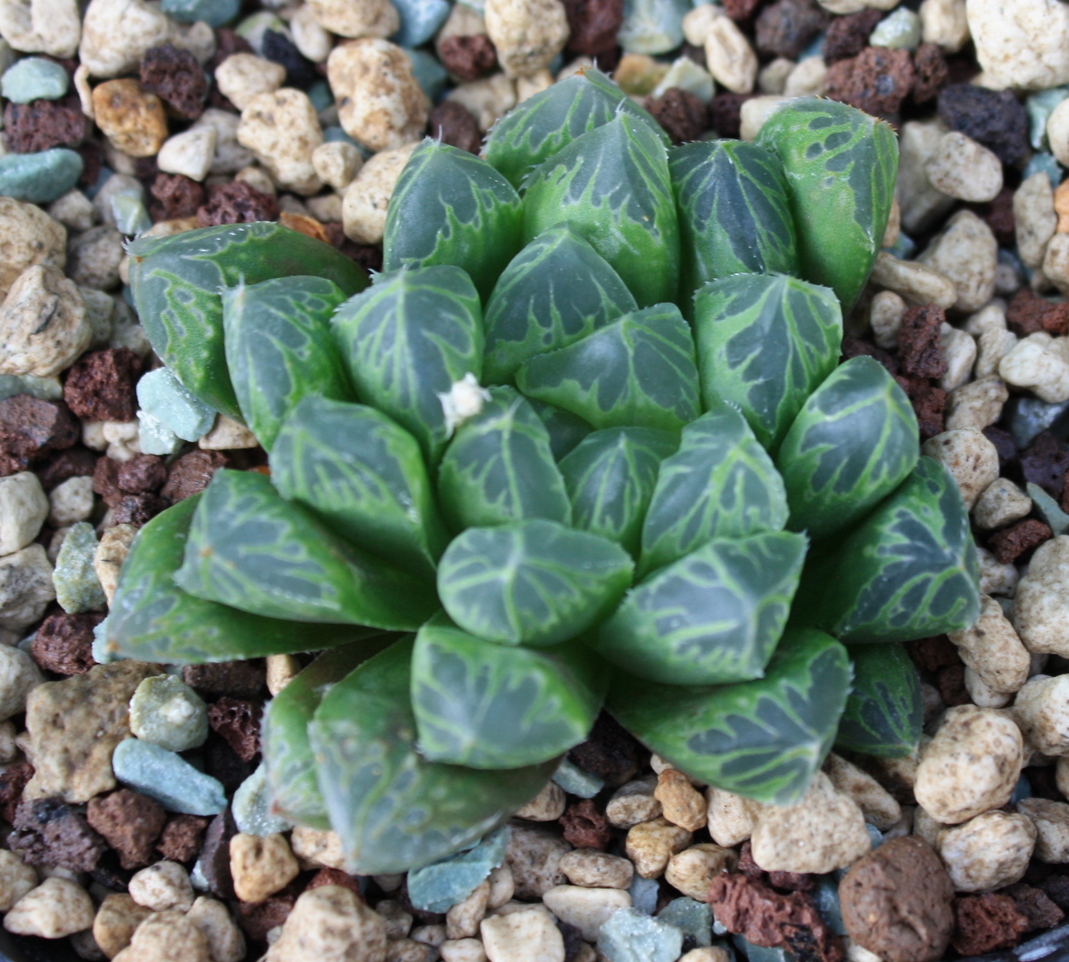 植株小窗晶莹剔透,叶片为翠绿色,叶尖有一根细长的纤毛,整个植株轻微往叶心合拢,叶片上的窗较小,叶片比姬玉露要大,常年翠绿色,晒多了会出现红褐色,休眠期为蓝绿色。