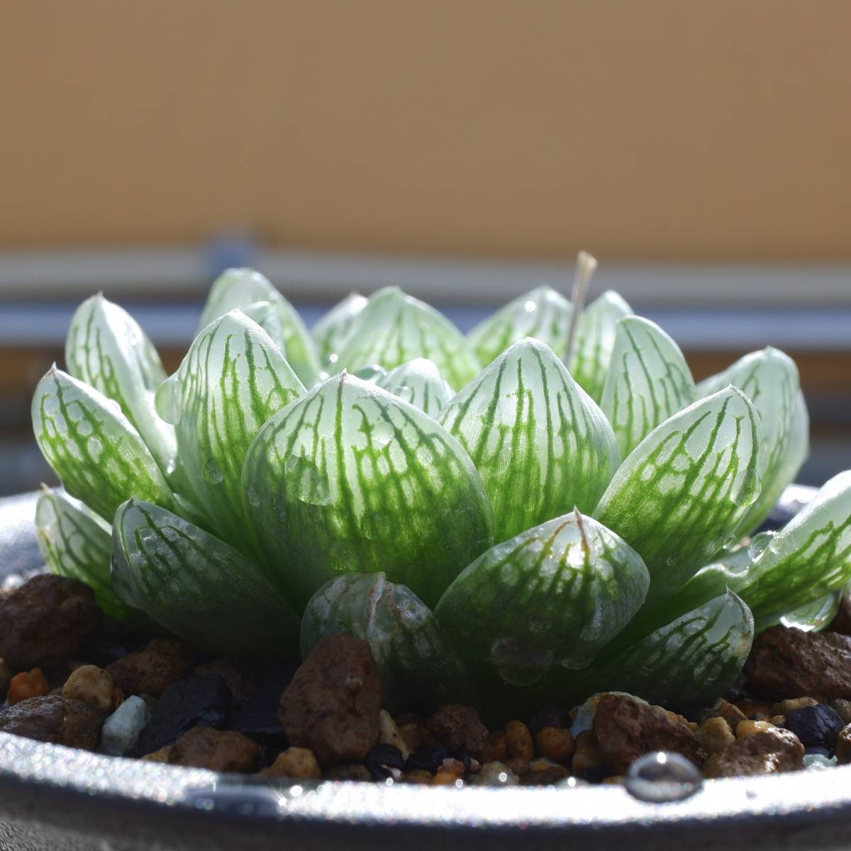 多年生肉质草本植物,肉质叶子呈现紧凑的莲座状排列,叶片肥厚,翠绿色,上半段呈透明或半透明状。