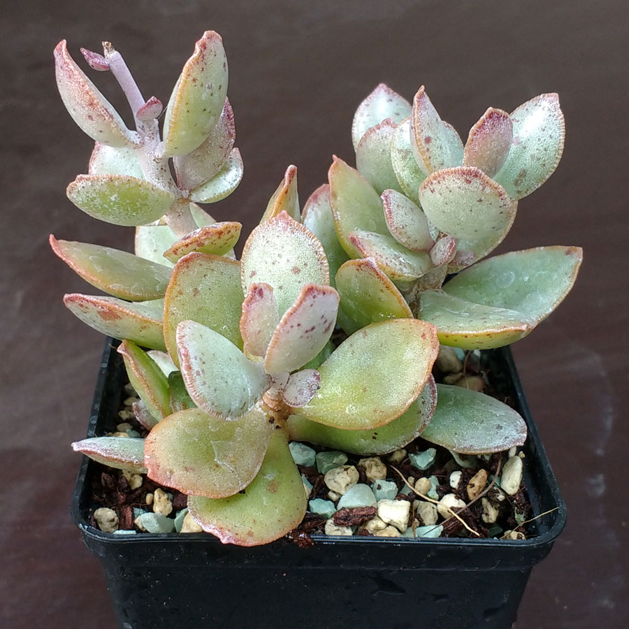 灰色的叶子有时会有略带紫色的斑点。可以长到8cm长,4cm宽。