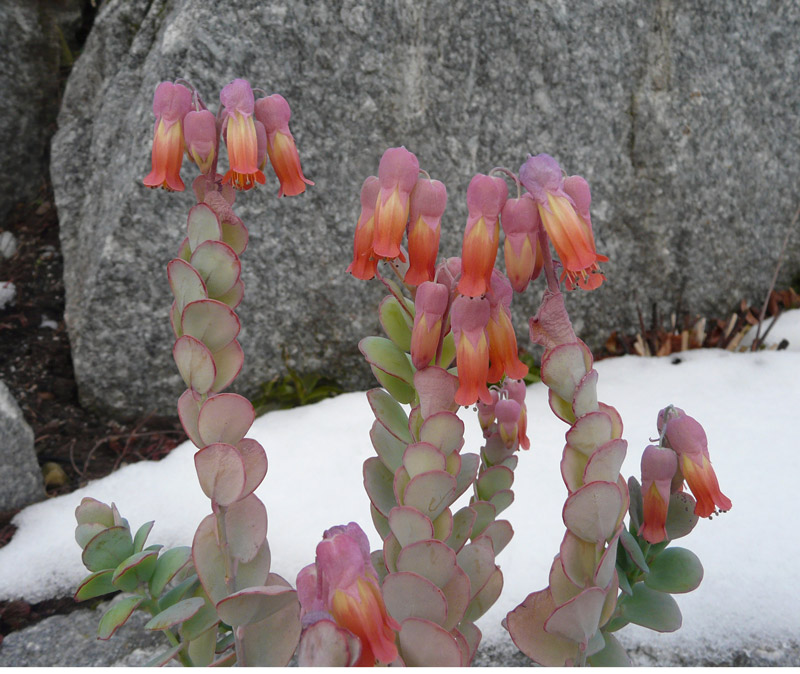 花序簇状,花朵向下,花为粉红色,如倒挂的风铃。