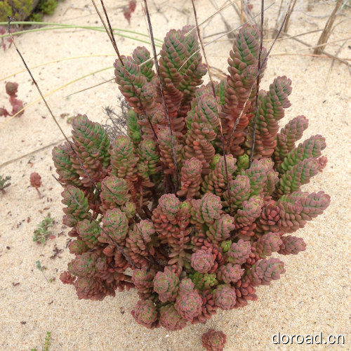 松塔景天植株矮小,生长紧密,且叶色四季皆为蓝绿色,可用于庭院作地被栽植,或作花坛镶边,或配置模纹花坛,也可盆栽作观叶植物置于室内,或用于屋顶绿化。