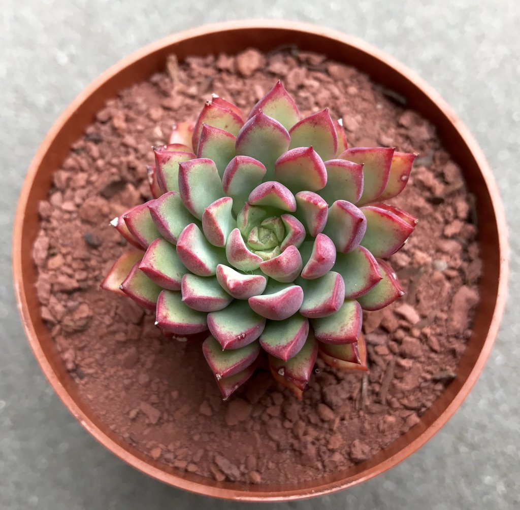 单头不大,3-5cm左右,最大可达8cm,容易群生,叶片细长,前段斜尖,密集环生于枝干上。在一定的温差和光照下,叶缘容易泛红,甚至叶片也会变得泛橙。春末开花,小花,钟型,白色。