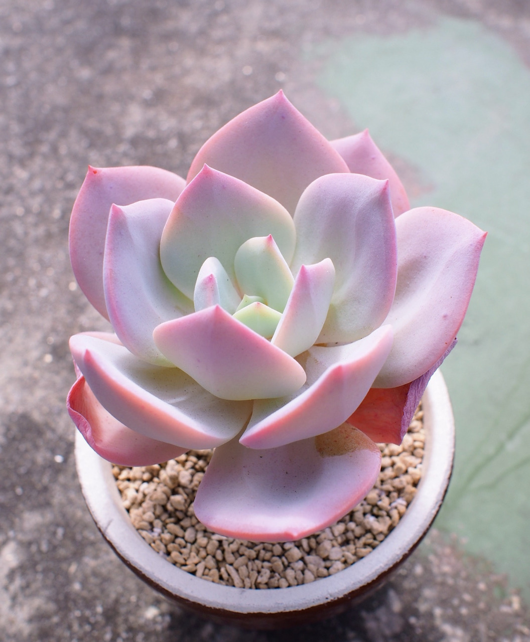 喜阳,可全日照,平时为绿色,日照时间增多后会变为红色。对水分的需求不多,叶片中心有很薄的一层白粉,浇水的时候应避开叶片中心,以免影响美观。开花特别漂亮,花后应将花茎剪去,以免占用养分。