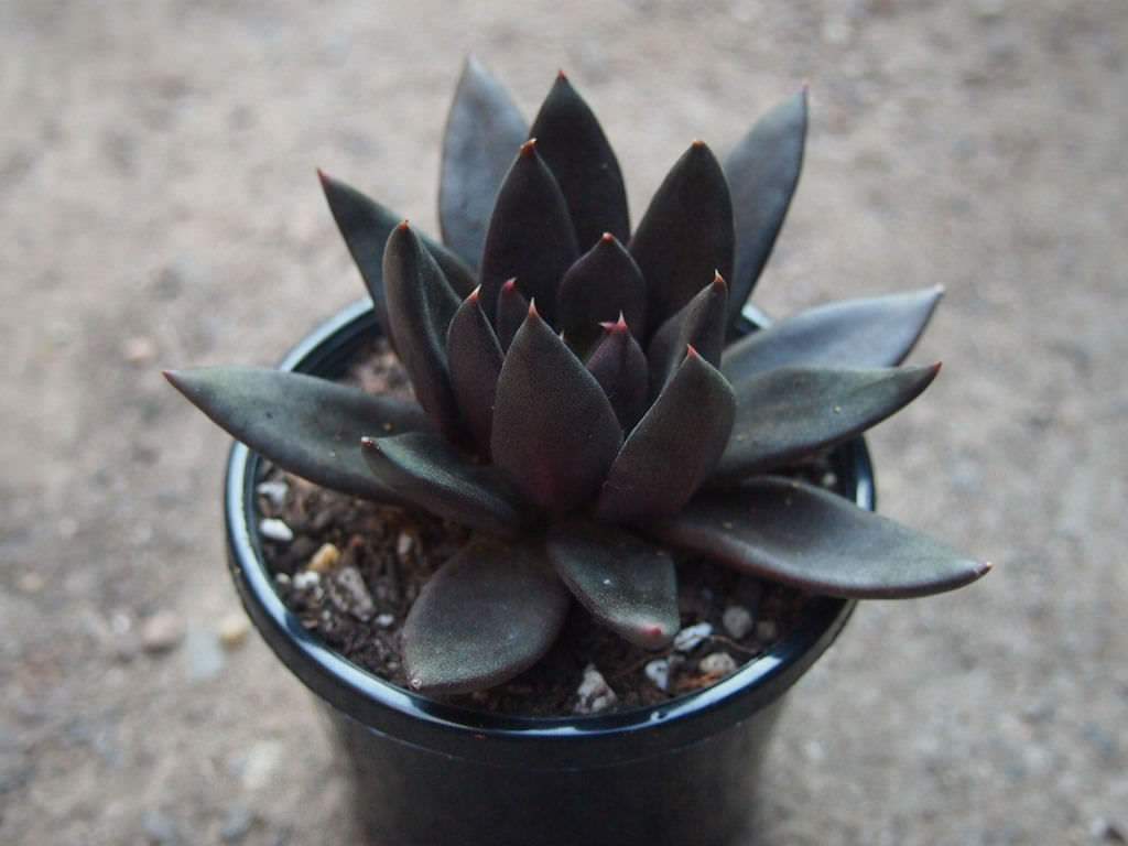 叶宽倒披针形,尖端锐利,叶色绿色到黑色,通常黑色,株型较大。春末夏初开花,聚伞
