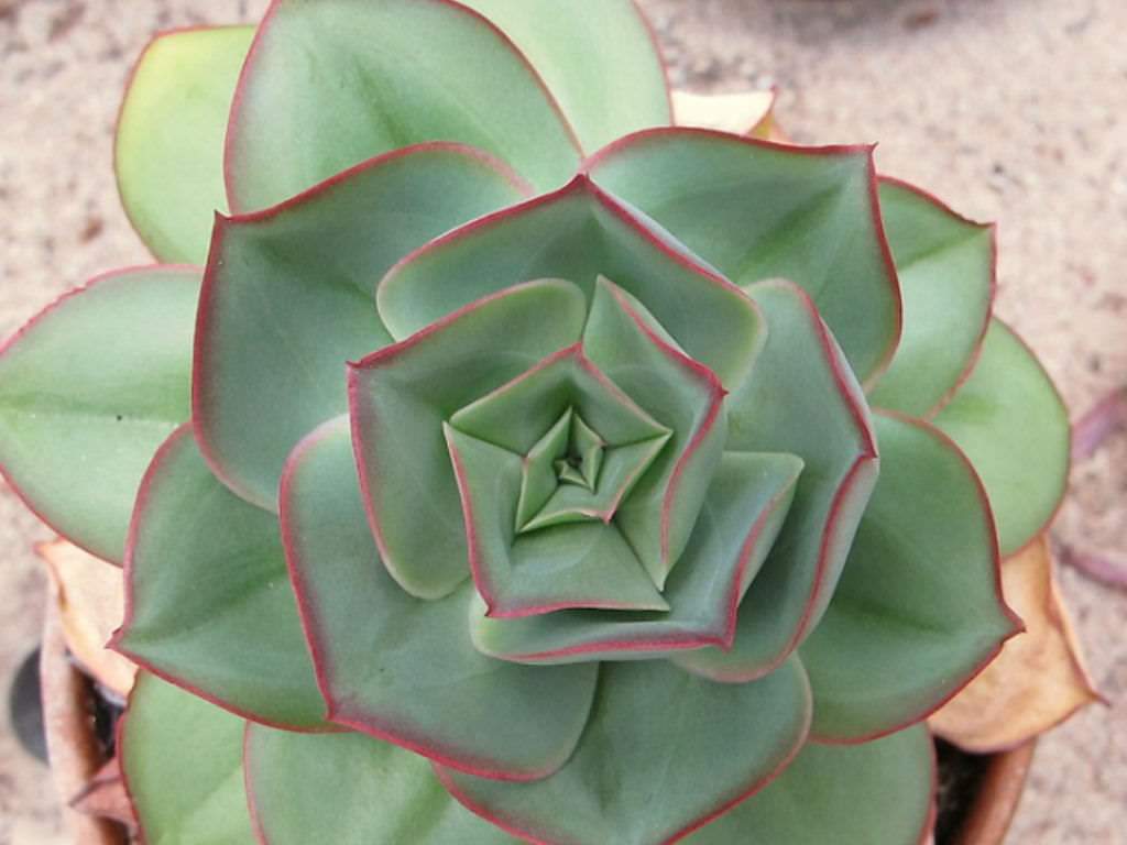 中大型品种,植株有粗壮的茎,随着时间的生长而慢慢逐渐伸长形成老桩。叶片莲座型密集排列,株径会长很大,钢叶莲叶片每个季节状态都有点不一样,叶缘薄两侧有轻微褶皱,有叶尖,叶片中间很厚,叶片中间有点凹陷,叶片两边轻微向中间对折。植株叶色蓝红色,叶片有轻微白粉。叶缘常年会粉红,冬季叶片边缘会很红,弱光则叶色绿,也容易拉长,老叶白粉掉落後呈光滑状。钢叶莲开簇状花序,花开钟型,黄红色。