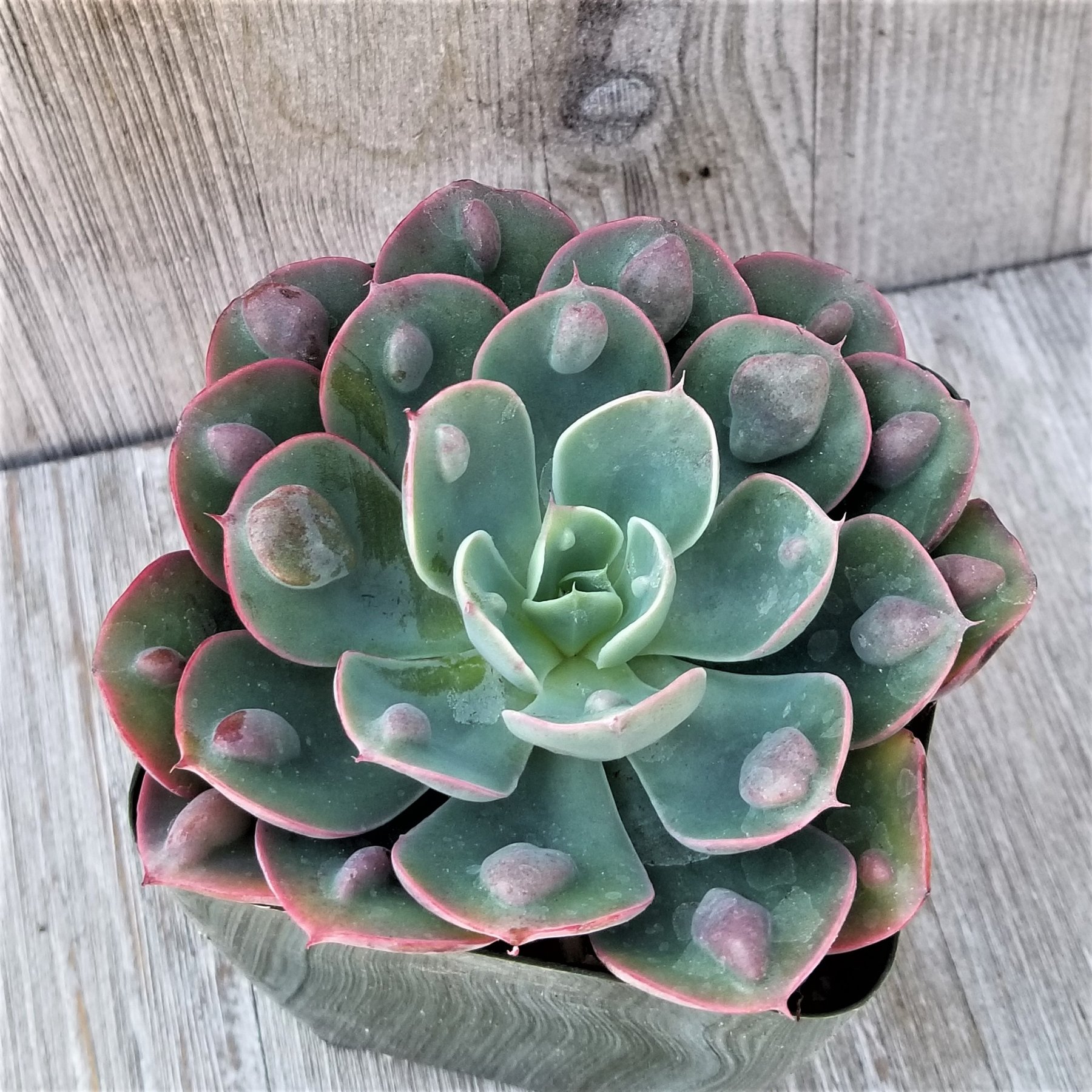 叶片圆匙状,前端较圆,有叶尖,株型和叶型、叶色和玉蝶有些相似,但光照充分下,叶缘容易变红。