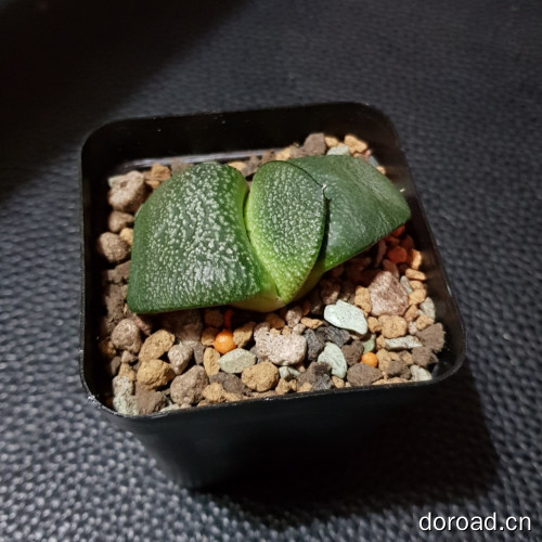 幼年时叶片两列叠生,舌状肉质叶片先端有尖,叶片具小疣。成年以后,叶片排列成莲座状,叶片绿色或墨绿色,稍有光泽,叶尖背面有明显的龙骨突,部分叶表面小疣脱落。花小筒状下垂,上绿下红。根粗,纺锤状,肉质,直径达12毫米,分支少。幼株叶两列叠生,肉质厚,长3-5厘米、宽3厘米。叶舌状,先端有尖,表皮有白色小疣,叶缘和叶尖都有小疣。成年株叶排列成莲座状,直径6-10厘米,单叶长5-6厘米、宽3-4厘米、厚1厘米,叶尖背面有明显的龙骨突,部分叶表面小疣脱落。总状花序,无分枝,高20-30厘米,有时达50厘米。花小,长约20毫米,筒状,胃状,鼓起部分约占花被总长的一半,基部粉红色,花被尖端绿色,下垂。种荚长圆形,长约25毫米,宽约8毫米。