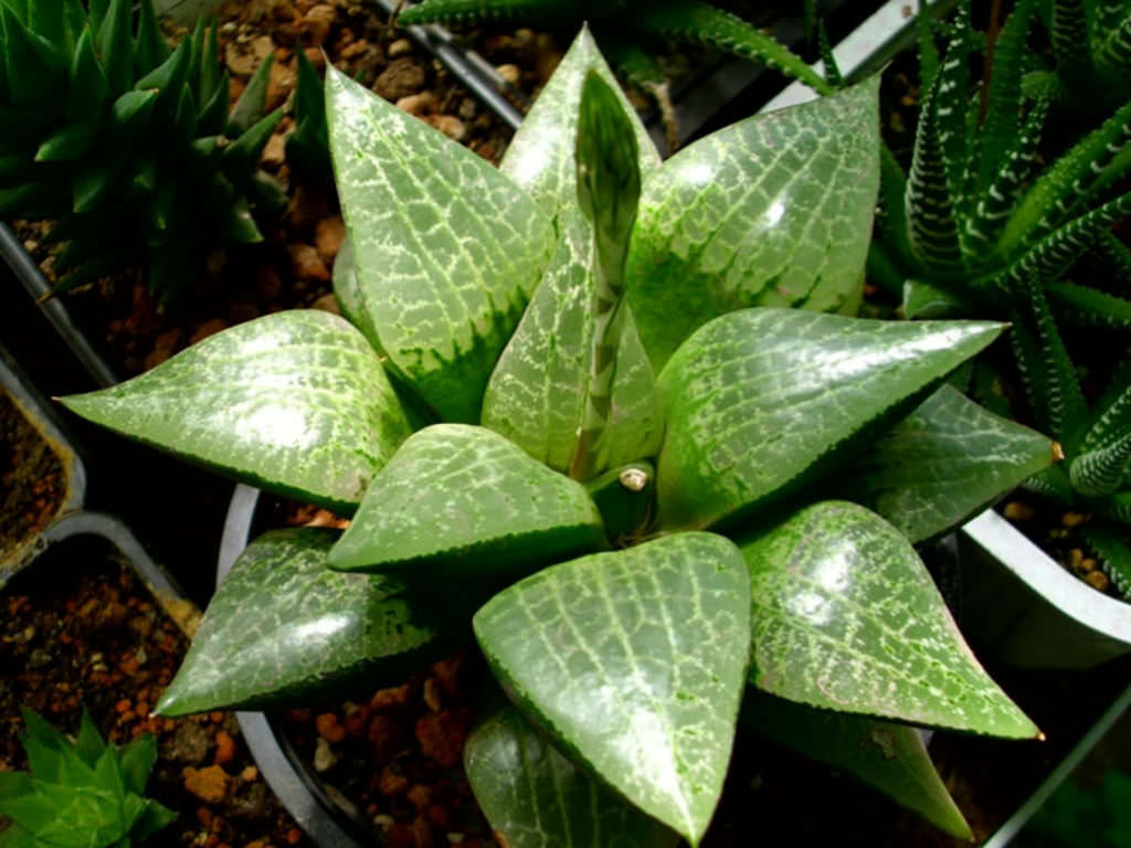 植株矮小、无茎。叶短而肥厚,螺旋状生长,呈莲座状排列,半圆柱形,顶端呈水平三角形,截面平而透明,形成特有的「窗」状结构,窗上有明显脉纹。