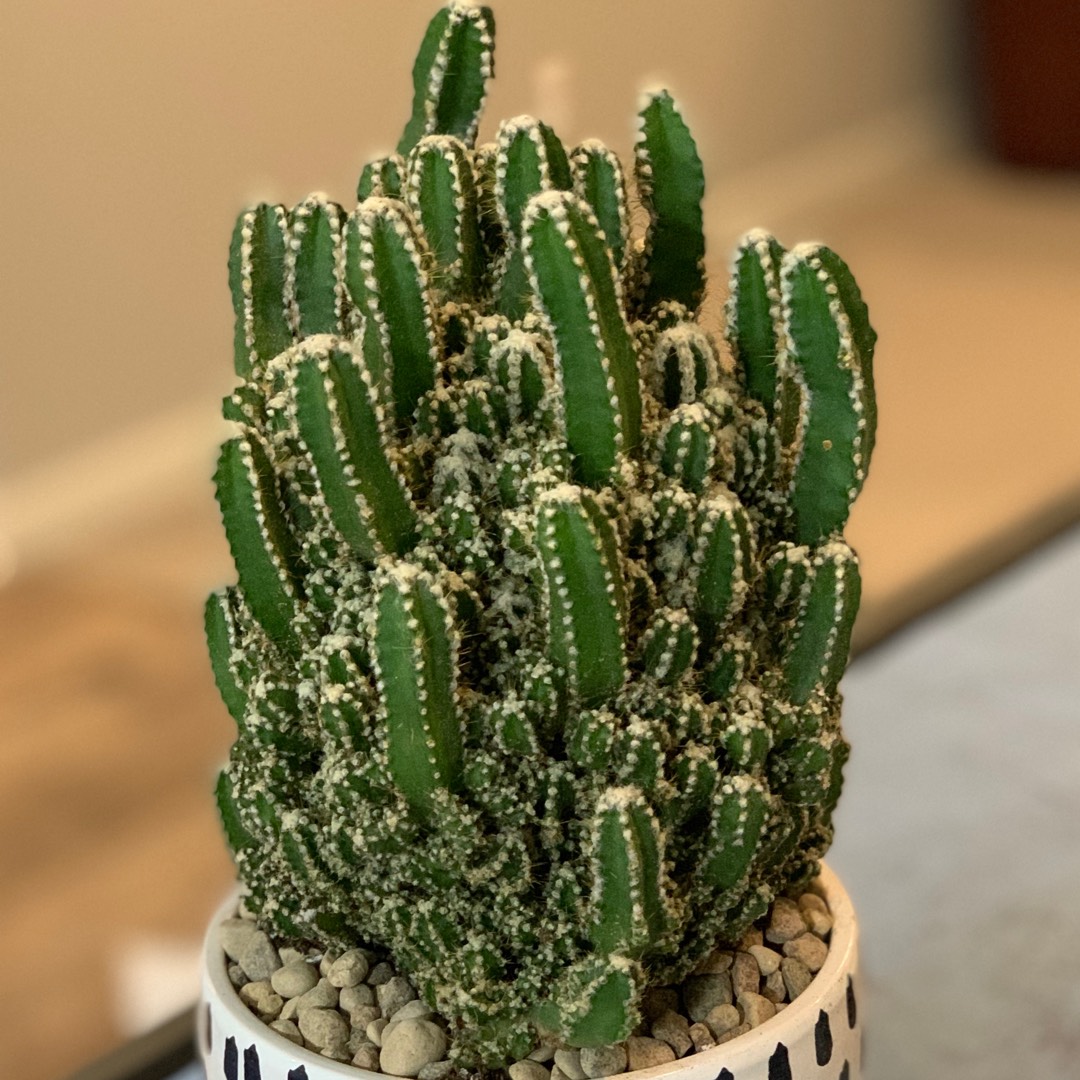 成不规则的圆柱形或假山形,肉质肥厚,生有毛刺,形态壮观,要培养8-9年才能开花。