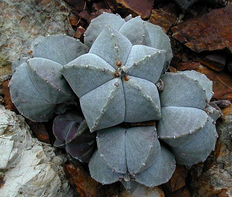 多年生肉质草本,植株单生,呈球形至长球形,表面密布细小的白色绒毛,呈星点状。通体具3-8条肥厚的肉质棱,棱直,棱脊呈三角状,表皮密被白色丛卷毛。刺座着生于棱缘上,上有褐色短绵毛,无刺。但成球慢,经3-4年才能开花。嫁接可使小球加快生长而早形成大球。花生于茎顶,花色橙黄,呈漏斗状,像菊花一样。