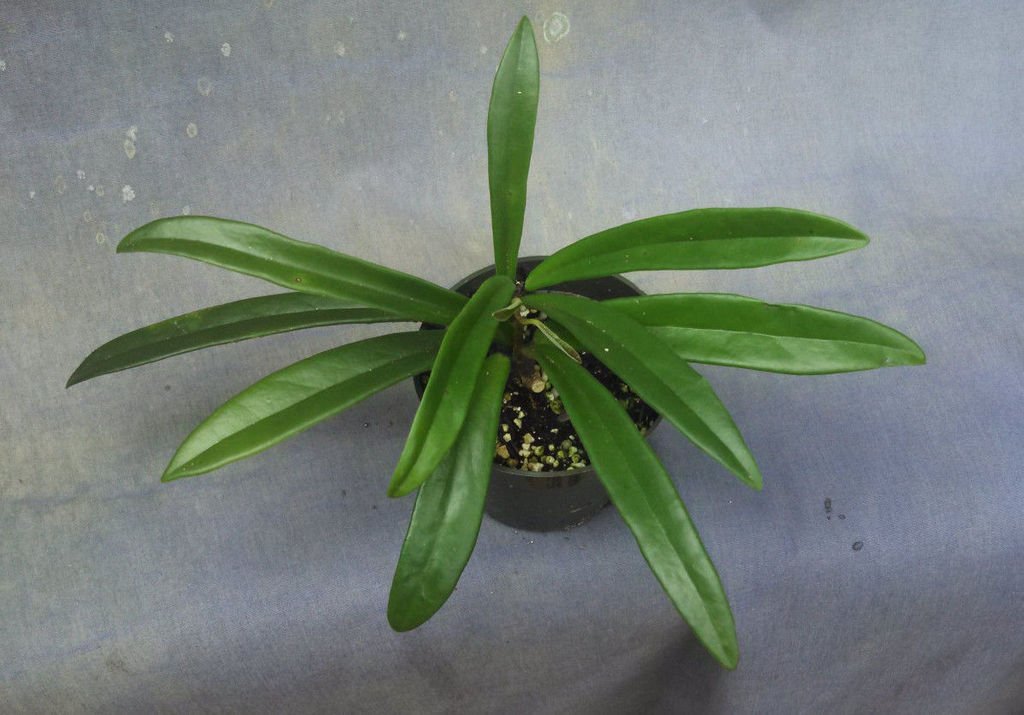 附生灌木,攀援在树上生根,除花冠内面具微柔毛外,其余无毛;枝和小枝干后中空;茎皮暗灰色。叶厚肉质,椭圆形或椭圆状长圆形,长6-9厘米,宽2-3厘米,顶端极钝,基部宽楔形或圆形,边缘外卷,叶面亮绿色,叶背浅绿色,干后黄色;中脉在叶面扁平,在叶背凸起,侧脉和小脉不明显;叶柄长1-1.5厘米,叶柄顶端有小腺体2-3个。聚伞花序腋生,比叶为短,直径7厘米,花序梗极短,长仅3毫米;花梗长3厘米;花萼深5裂,花萼筒近钟形,裂片披针形;花冠白色,外面无毛,内面有微柔毛,裂片镊合状排列,长圆形,长4毫米,宽3毫米,顶端在花蕾时贴合;副花冠裂片星状展开,其外角锐尖;其余特征与球兰组相似。