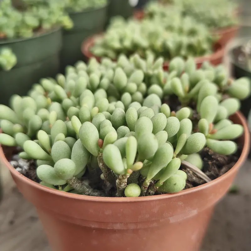 叶肉质,扁球状,非常类似于水泡的叶子。