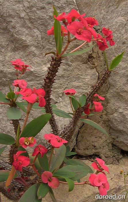 铁海棠的花开在新枝的顶端,要想让铁海棠多开花,就必须进行适当的修剪。因为主枝太长,开花就少。所以应在花期之后将过长的和生长不整齐的枝剪短,一般在枝条的剪口下长出2个新枝,当新枝长到5-6厘米时就能开花。每年修剪1次,几年后,整个植株就会开满鲜艳的小红花。由于枝条细长较软,随植株长大,可用竹棍或铁丝扎成不同形状的支架,将枝条牵引捆缚其上,使之成为花柱状,开花时更能显现出红花绿叶的美丽。若不及时修剪,任其自然生长,其主枝就会越长越长,不仅开花少,而且株形也不美观。