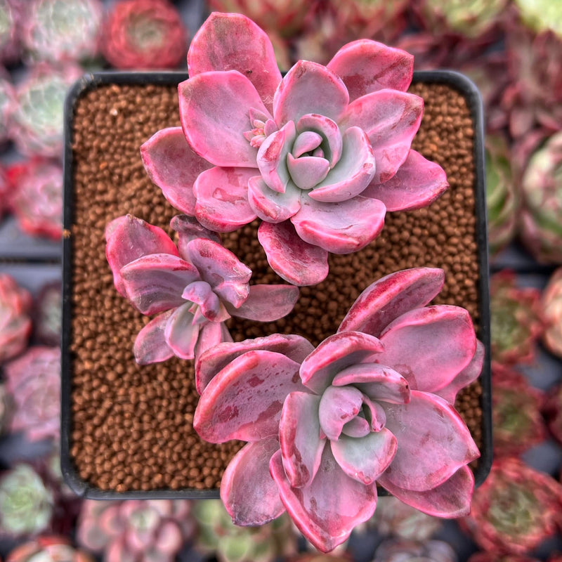 叶端或收尖、或钝圆,被白粉,绿色泛红晕、浅棕色、灰紫色、玫瑰红色或粉红果冻色,随生长过程和季节、光照、温差的变化而变化。叶片正面有些内凹,背面稍有隆起。