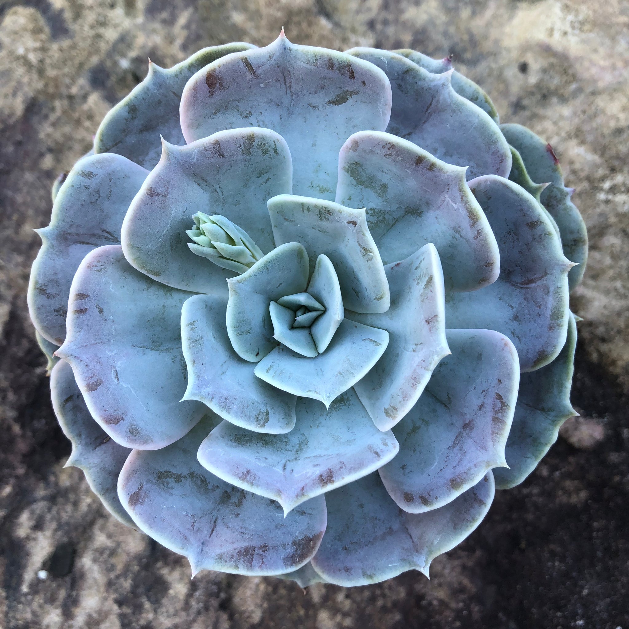叶全部基生,叶莲座状排列,被白色粉;叶片肉质,宽倒卵形、扇形,叶顶端有小尖。