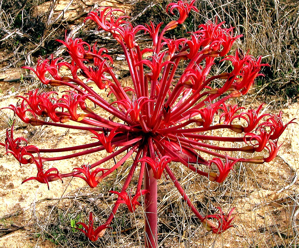 40-50cm,茎10-15cm,易折,先花后叶, 展延7-19cm,上表面常呈绒状。20-40舌状瓣,花形呈伞球状,明亮淡红色。