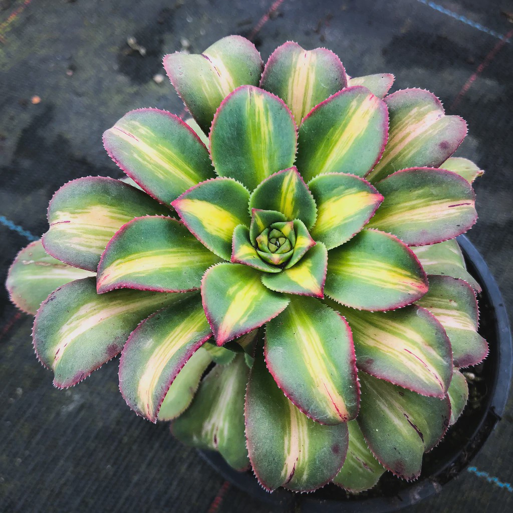 生长在茎端和分枝顶端集和成莲座状叶盘,叶盘直径可以养到13-20厘米,叶片绿色中间带黄色锦斑,