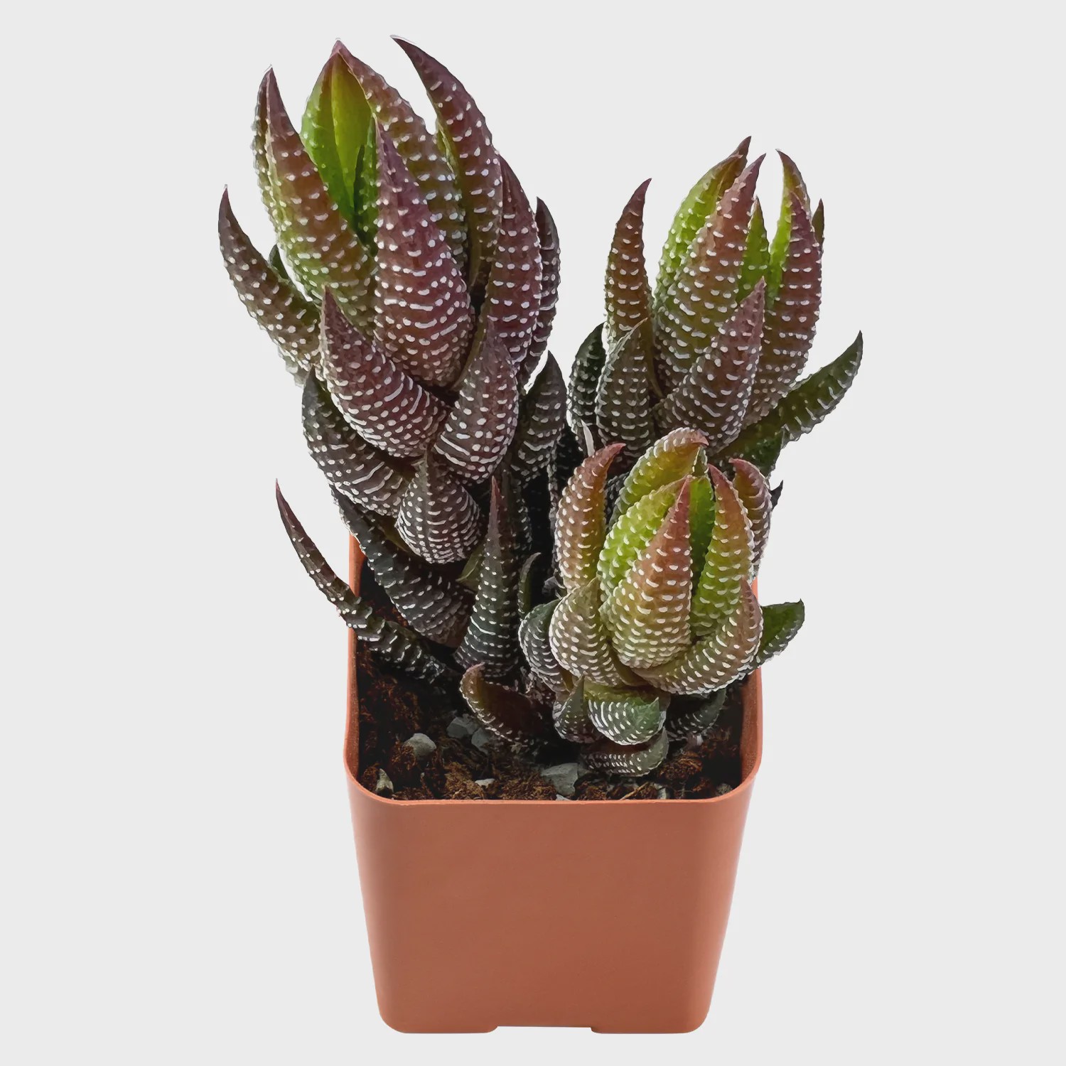肥厚,先端向内侧弯曲,整个植株呈柱状,叶背有成行排列的凸起白色纹理。叶通常呈深绿色,在阳光下会慢慢变成紫红色。
