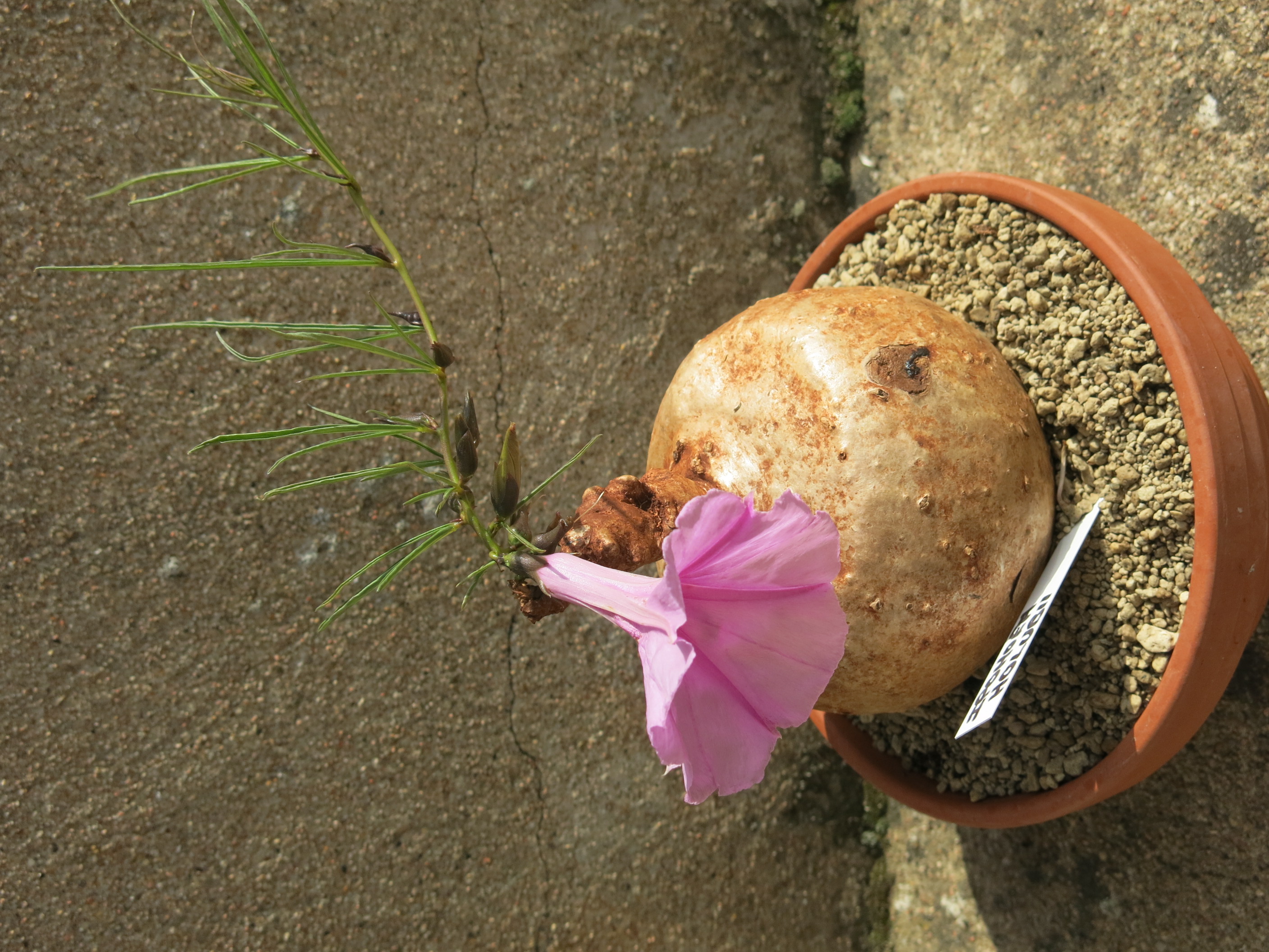 多年生块根木质藤本。茎含乳汁,株高3米左右,块根直径可达20厘米。块根表面裂纹则呈不规则变化;表皮疙疙瘩瘩呈红褐色,整体形态看上去圆润,叶为复叶。叶互生,没有托叶。花轴射对称,花瓣合生,花冠漏斗形,萼片5片,雄蕊5枚,子房上位。果实为蒴果、浆果或坚果,有1-4粒种子。